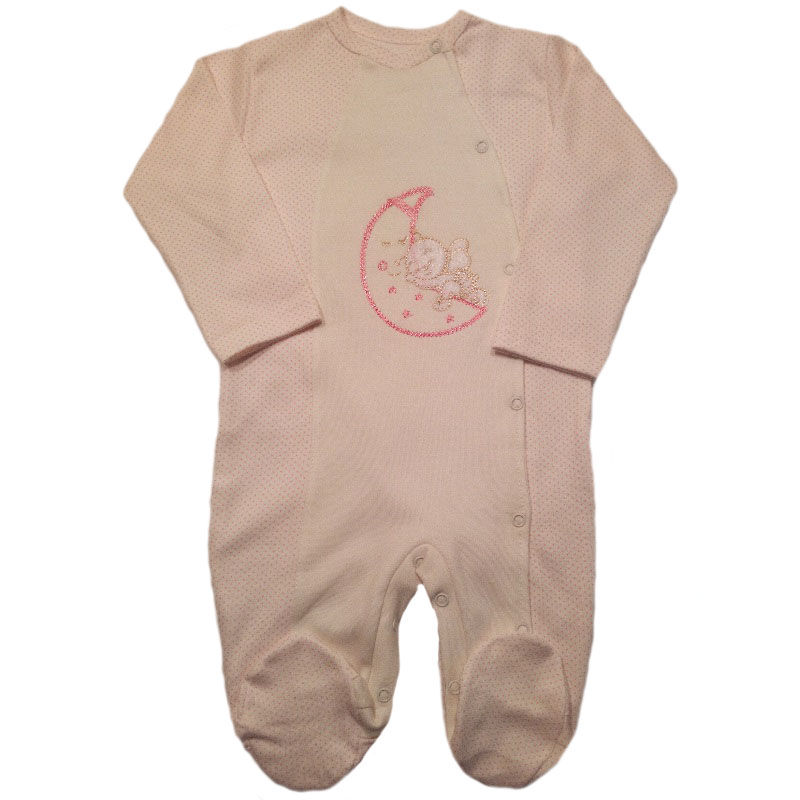 Комбинезон спереди с вышивкой, с закрытыми ножками, между ножек на кнопочках с косой застёжкой спереди на кнопочках.