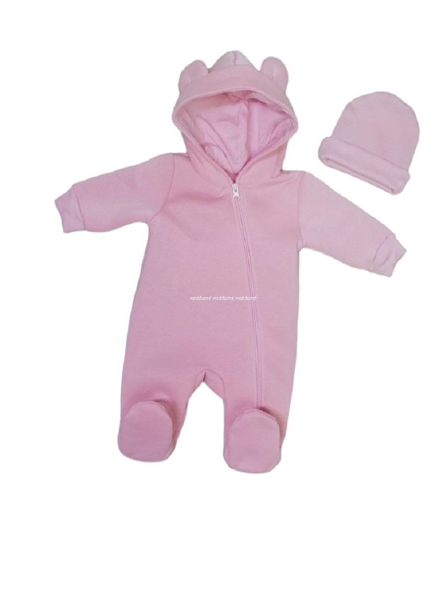 "МоёДитё" комбинезон выполнен из футера с начёсом. Комбинезон с капюшоном на подкладке и декорирован сверху ушками, с закрытыми ножками, рукава на манжетах, спереди косая молния до конца одной ножки. Шапочка из кашкорсе можно одевать как с отворотом, так и без. Очень хорошо тянется.